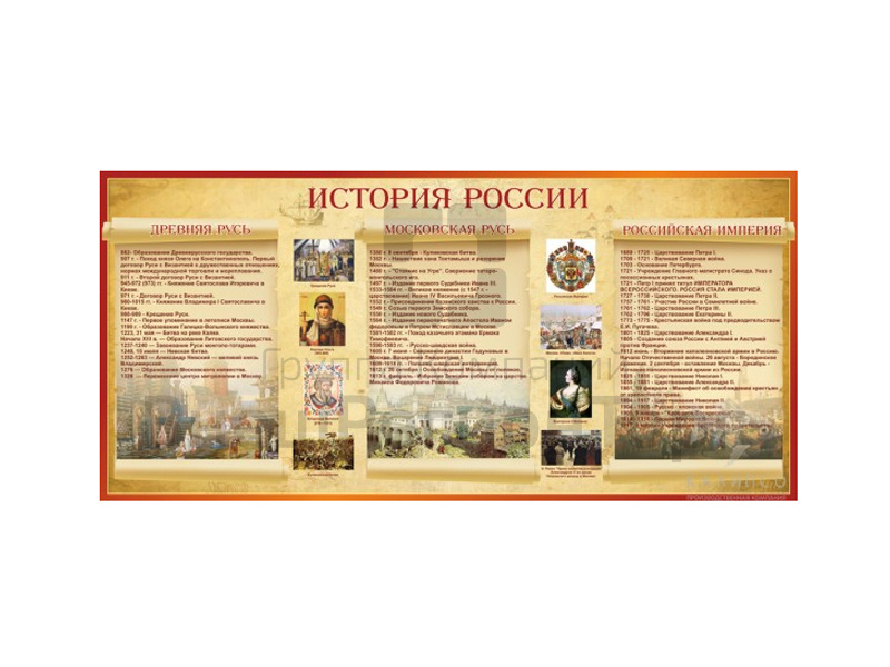 Подробное описание Стенд "ИСТОРИЯ РОССИИ" 200х95 см