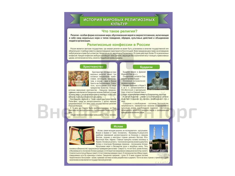 Подробное описание Стенд "ИСТОРИЯ МИРОВЫХ РЕЛИГИЙ" 70х100 см
