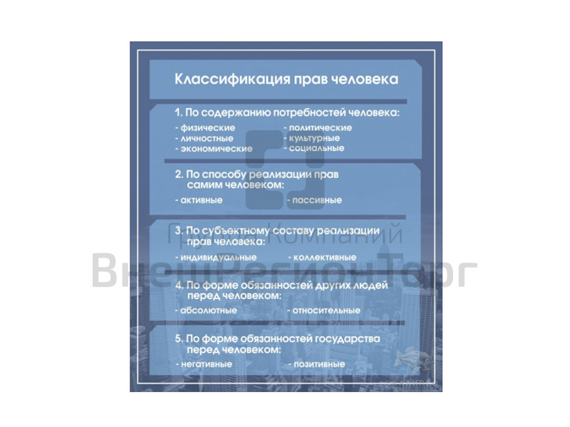Подробное описание Стенд "КЛАССИФИКАЦИЯ ПРАВ ЧЕЛОВЕКА" 90х80 см
