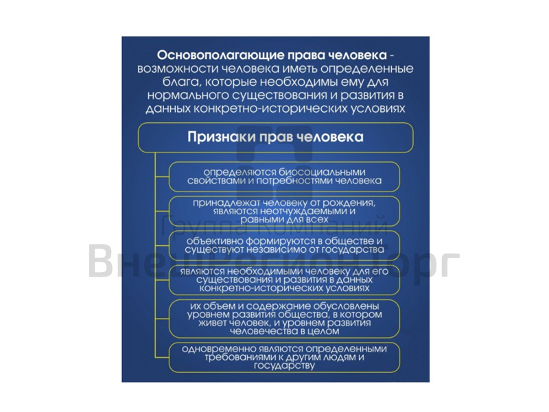 Подробное описание Стенд "ОСНОВОПОЛАГАЮЩИЕ ПРАВА ЧЕЛОВЕКА" 80х90 см