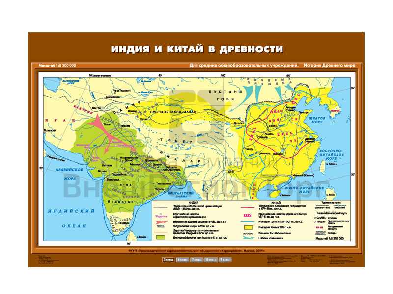 Учебная карта "Индия и Китай в древности"