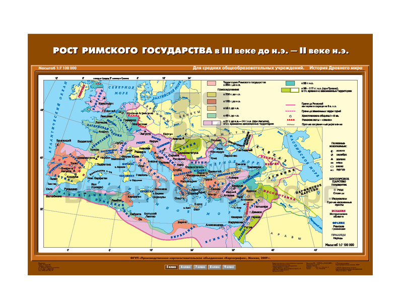 Подробное описание Учебная карта "Рост Римского государства в III в. до н.э. – II в. н.э."