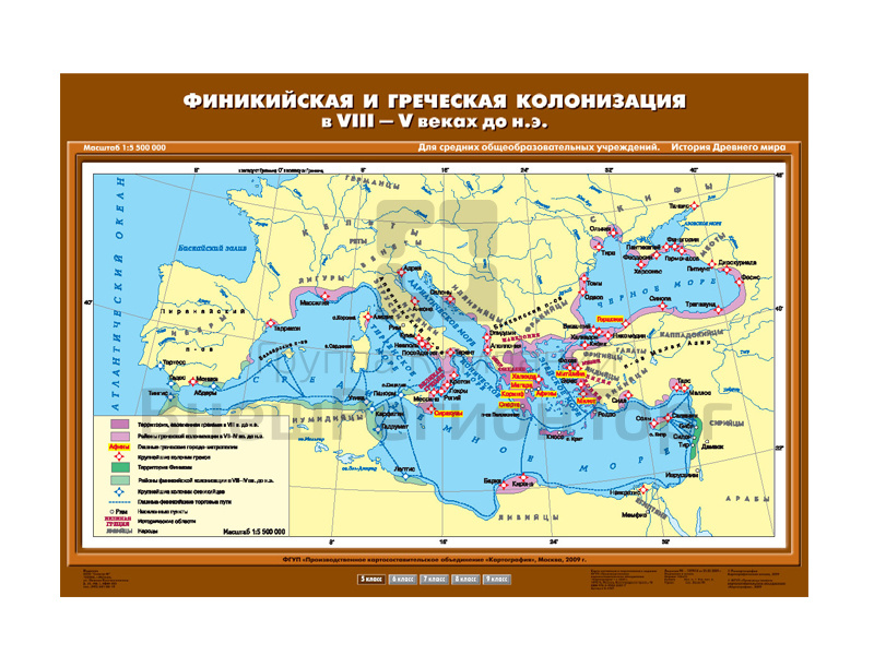 Подробное описание Учебная карта "Финикийская и греческая колонизация в VIII-V вв. до н.э."