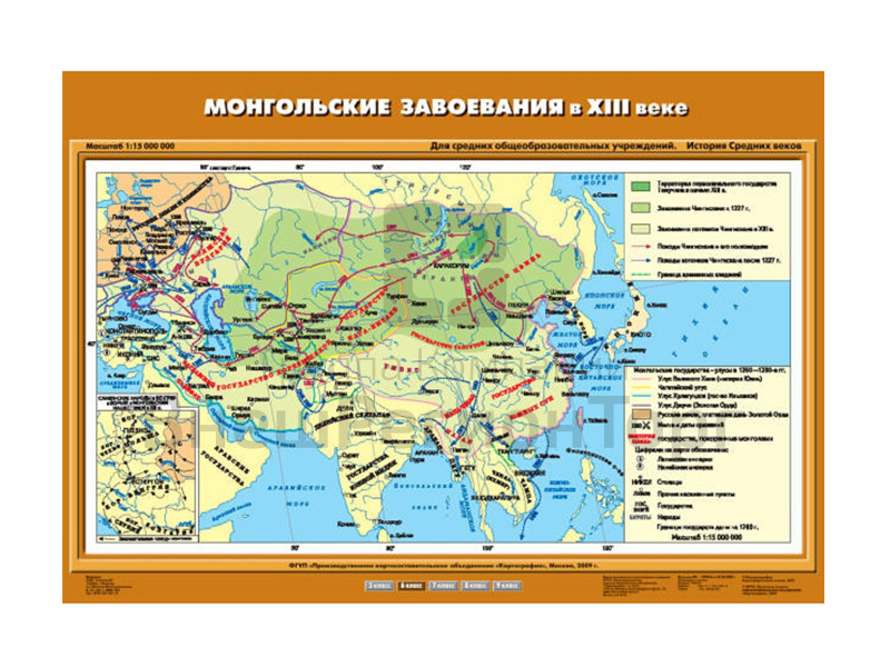 Подробное описание Учебная карта "Монгольские завоевания в XIII в."
