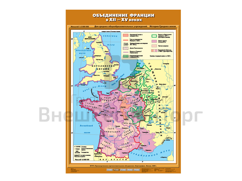 Подробное описание Учебная карта "Объединение Франции в XII-XV вв."