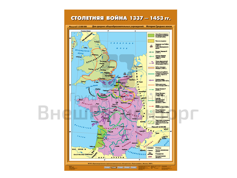 Подробное описание Учебная карта "Столетняя война 1337-1453 гг."