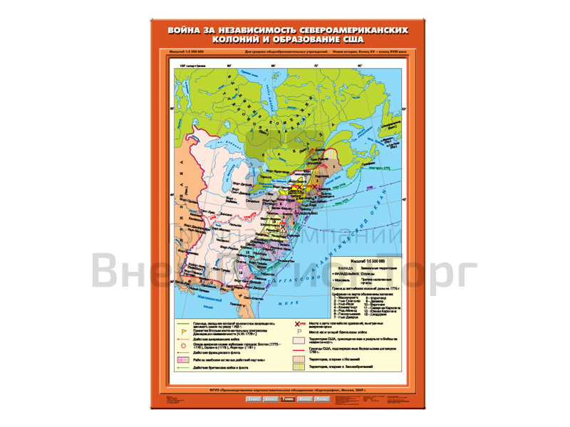 Подробное описание Учебная карта "Война за независимость североамериканских колоний и образование США"