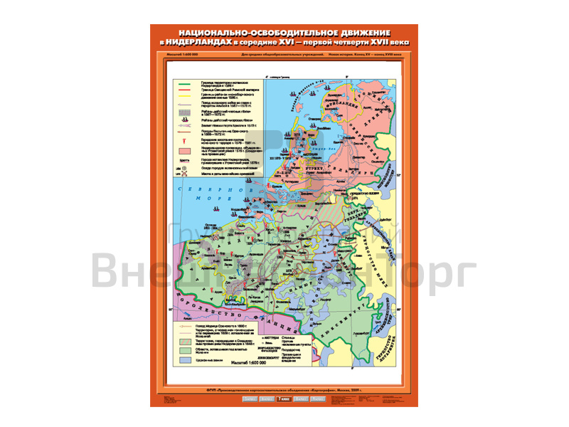 Подробное описание Учебная карта "Национально-освободительное движение в Нидерландах в середине XVI-XVII вв."