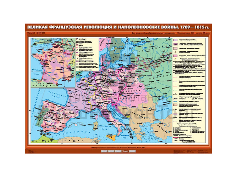 Подробное описание Учебная карта "Великая Французская революция и Наполеоновские войны. 1789-1815 гг."