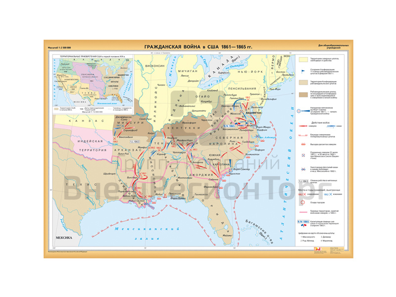 Подробное описание Учебная карта "Гражданская война в США 1861-1865 гг."