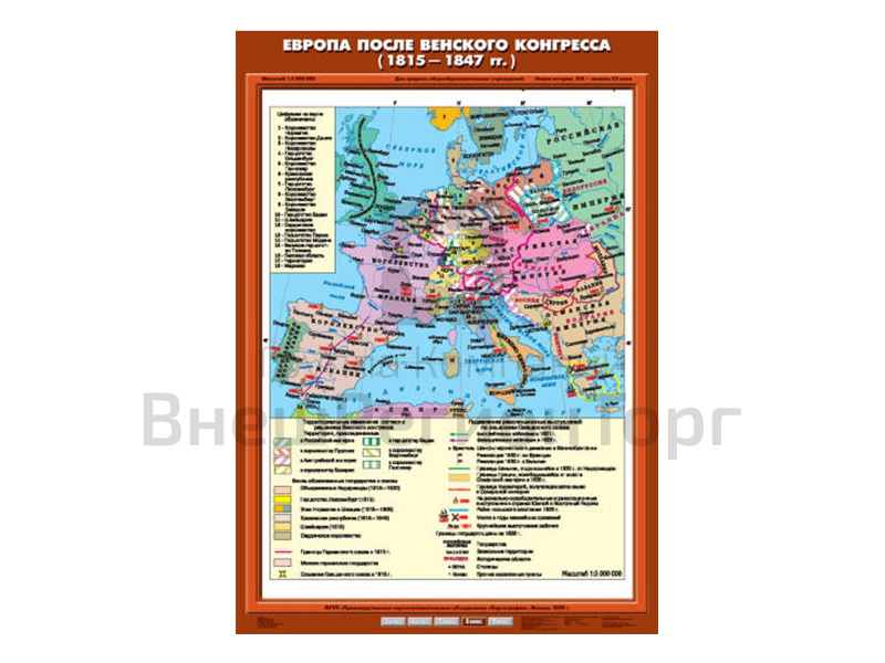 Подробное описание Учебная карта "Европа после Венского конгресса (1815-1847 гг.)"