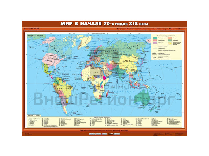 Подробное описание Учебная карта "Мир в начале 70-х годов XIX в."