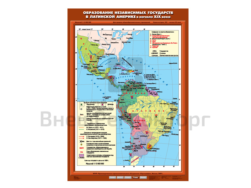 Подробное описание Учебная карта "Образование независимых государств в Латинской Америке в начале XIX в."