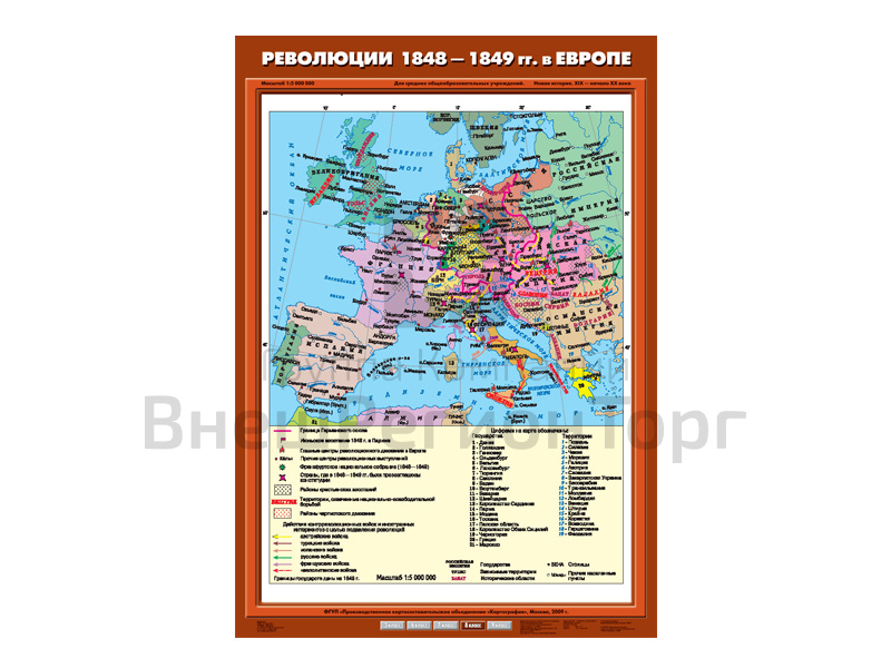 Подробное описание Учебная карта "Революции 1848-1849 годов в Европе"