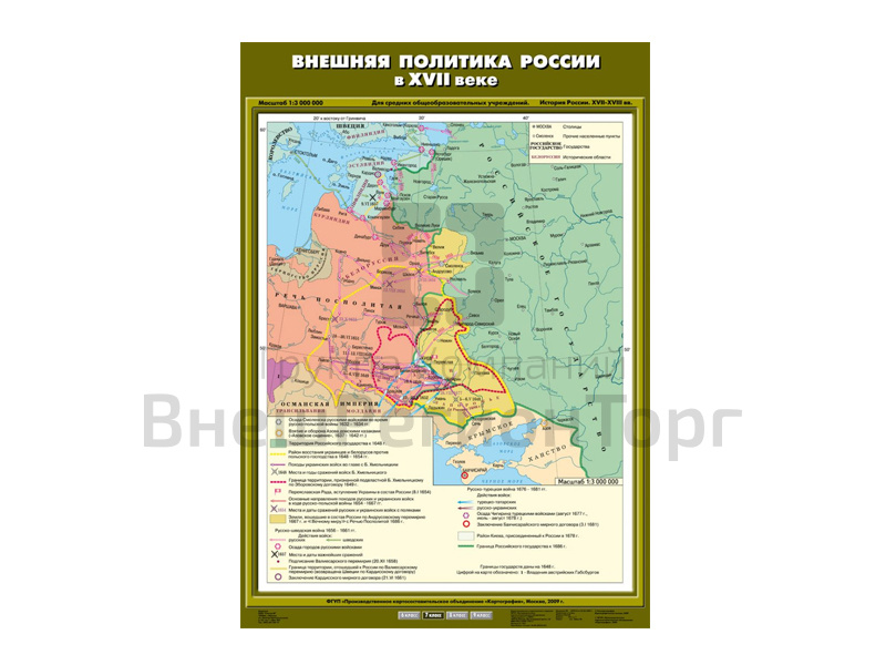 Подробное описание Учебная карта "Внешняя политика России в XVII веке"