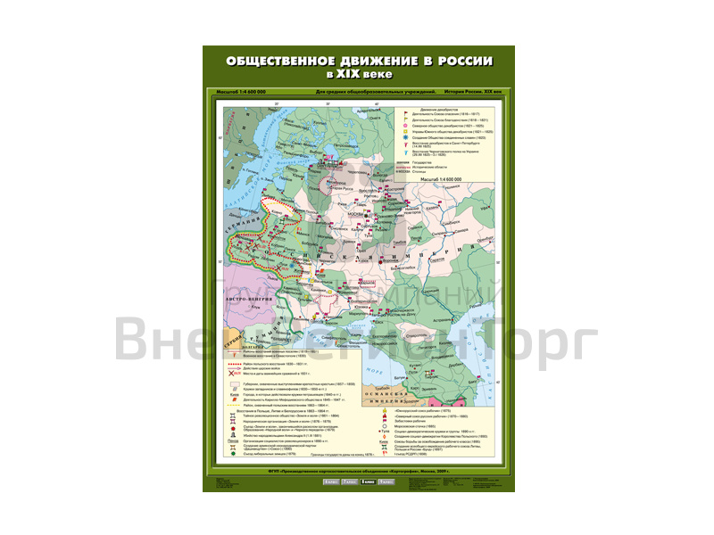 Подробное описание Учебная карта "Общественное движение в России в XIX веке"