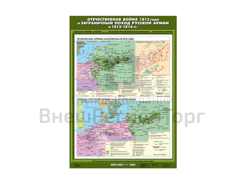Учебная карта "Отечественная война 1812 года и заграничный поход русской армии в 1813 - 1814 гг."