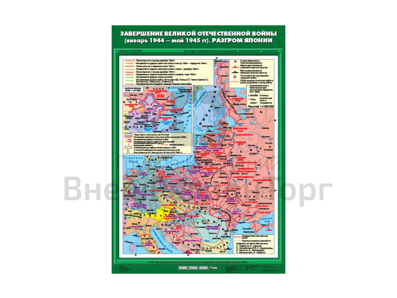 Подробное описание Учебная карта "Завершение Великой Отечественнной войны (01.1944 - 05.1945 гг). Разгром Японии"