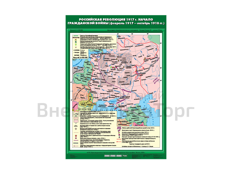 Подробное описание Учебная карта "Российская революция 1917 г. Начало Гражданской войны (02.1917 - 10.1918 гг.)