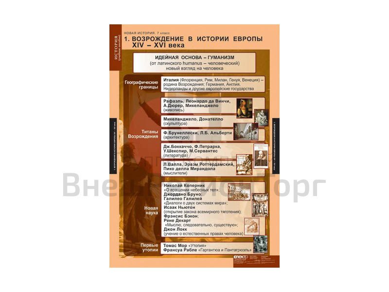 Возрождение в истории Европы. Реформация. Нидерландская революция. Английская революция. Эпоха Просвещения. Великая Французская.Размер: 68х98 см
