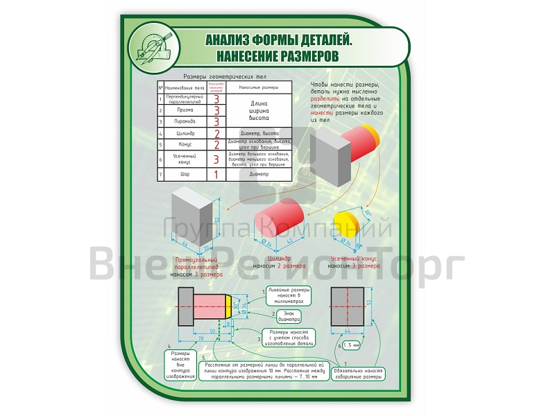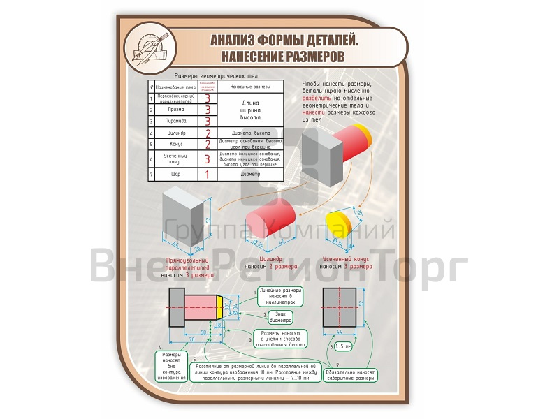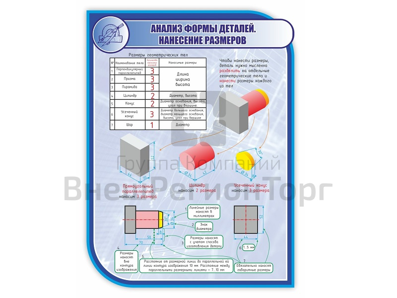 Стенд для школы АНАЛИЗ ФОРМЫ ДЕТАЛЕЙ. НАНЕСЕНИЕ РАЗМЕРОВ