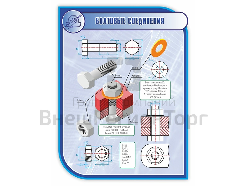 Подробное описание Стенд БОЛТОВЫЕ СОЕДИНЕНИЯ 1*0,75м (скругл.углы)