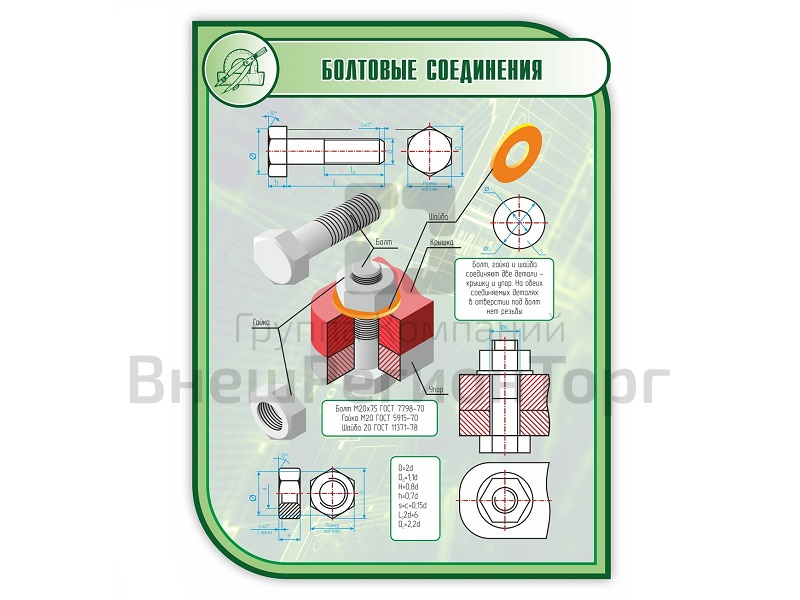 Стенд для школы БОЛТОВЫЕ СОЕДИНЕНИЯ