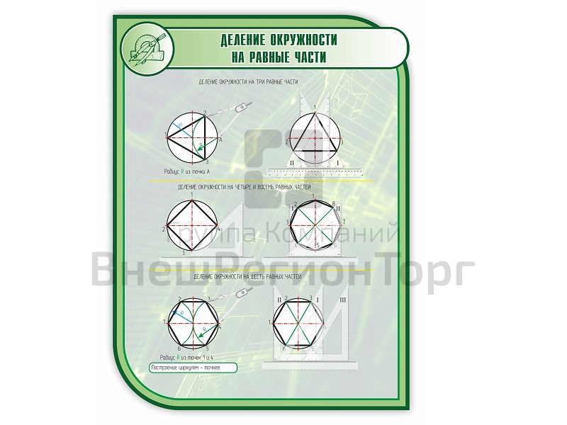 Стенд для школы ДЕЛЕНИЕ ОКРУЖНОСТИ НА РАВНЫЕ ЧАСТИ