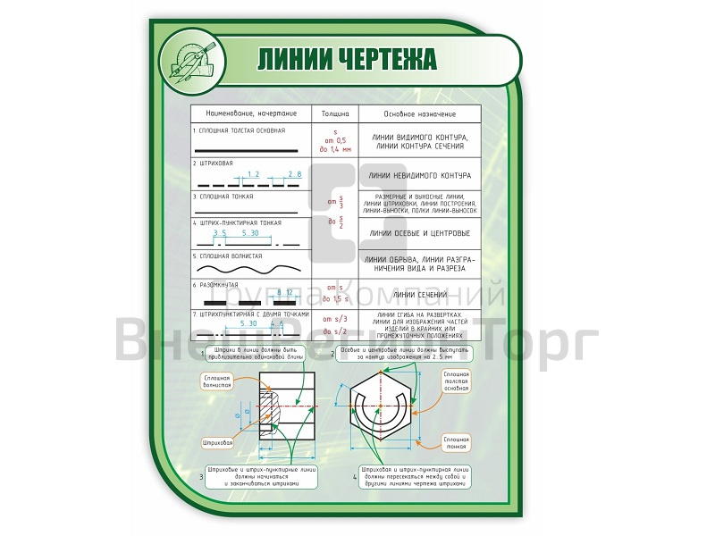 Подробное описание Стенд ЛИНИИ ЧЕРТЕЖА 1*0,75м (скругл.углы)