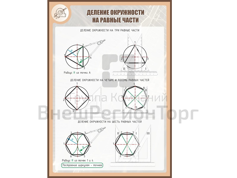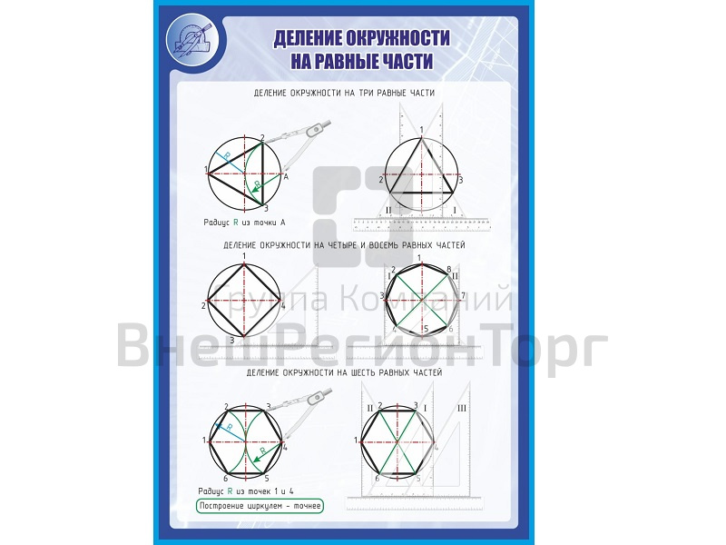 Стенд для школы ДЕЛЕНИЕ ОКРУЖНОСТИ НА РАВНЫЕ ЧАСТИ