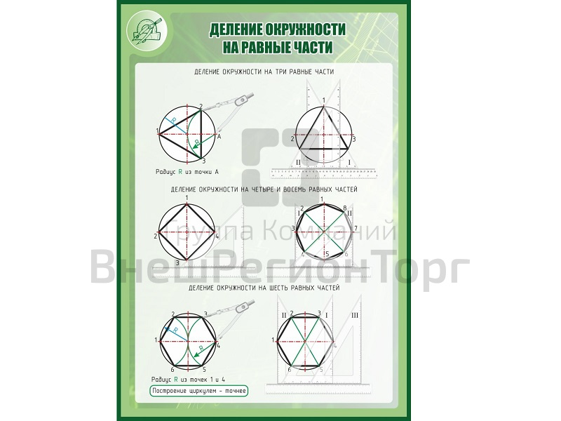 Подробное описание Стенд ДЕЛЕНИЕ ОКРУЖНОСТИ НА РАВНЫЕ ЧАСТИ 1*0,7м
