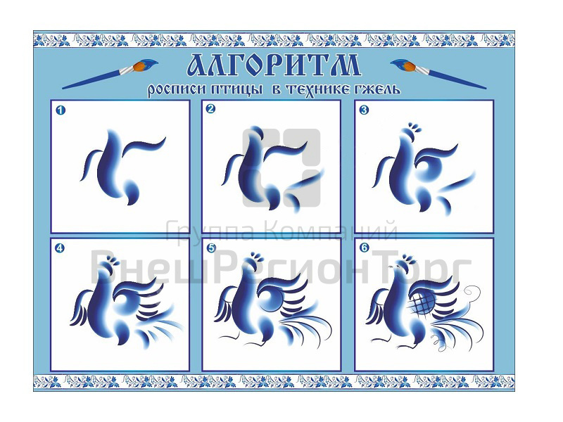 Подробное описание СТЕНД АЛГОРИТМ РОСПИСИ ПТИЦЫ В ТЕХНИКЕ ГЖЕЛЬ