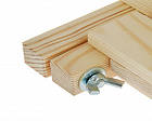 Мольберт выполнен из массива сосны, которая тщательно обрабатывается и не имеет шероховатостей. Фурнитура (петли, фиксаторы) изготовлена из устойчивого к коррозии металлического сплава.