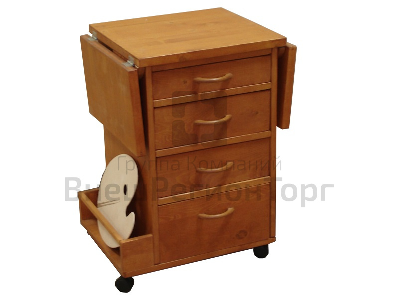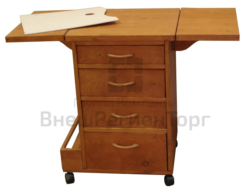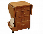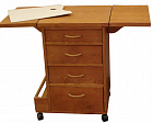 Тумбочка с 4-мя выдвижными ящиками для хранения красок, кистей, палитр, мастихинов и прочих аксессуаров художественного творчества с откидными дополнительными плоскостями и карманом для хранения больших палитр и бутылочных растворителей.