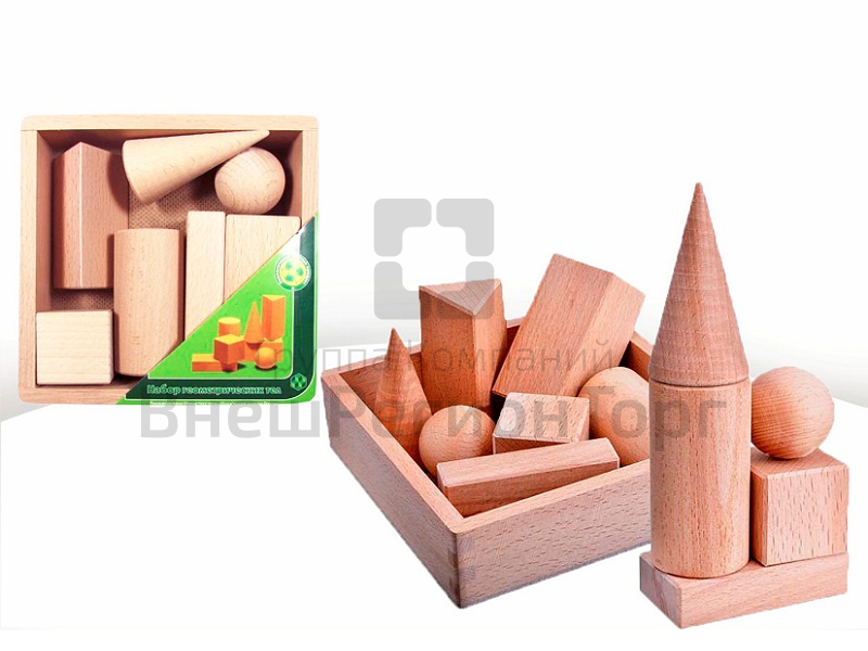 Комплектация: 7 элементов (куб, шар, конус, цилиндр, призмы квадратная, треугольная, прямоугольная).