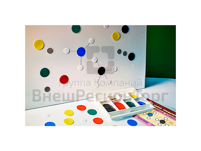 Набор представляет собой плоские модели-аппликации на магнитной основе. Диски обозначают атомы различных химических элементов, с применением общепринятой системы цветового кодирования, полоски используются для обозначения одинарных, двойных и тройных связей.