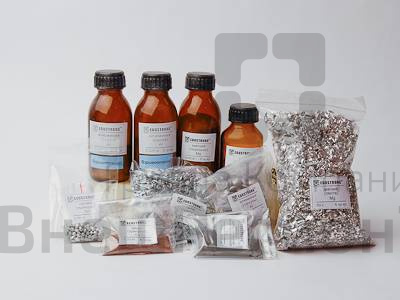 Состав набора (кг): Алюминий (гранулы) - 0,1. Алюминий (пудра) - 0,05. Железо металлическое - 0,05. Магний (лента) - 0,05. Магний (порошок) - 0,05. Медь (гранулы) - 0,05. Олово (гранулы) - 0,05. Цинк (гранулы) - 0,5. Цинк (порошок) - 0,05.