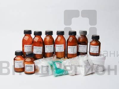Состав набора (кг): Алюминия хлорид - 0,05. Аммония хлорид - 0,1. Железа (III) хлорид - 0,1. Калия йодид - 0,1. Калия хлорид - 0,05. Цинка хлорид - 0,05. Кальция хлорид - 0,1. Магния хлорид - 0,1. Натрия хлорид - 0,1. Меди (II) хлорид - 0,1. Бария хлорид - 0,1. Натрия бромид - 0,1. Натрия фторид - 0,05. Лития хлорид - 0,05.