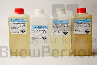 Состав набора (кг): Кислота соляная "ч" - 3,0. Кислота серная "ч" - 0,9.