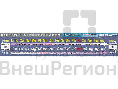 Таблица демонстрационная "Электрохимический ряд напряжений металлов", 40х200 см
