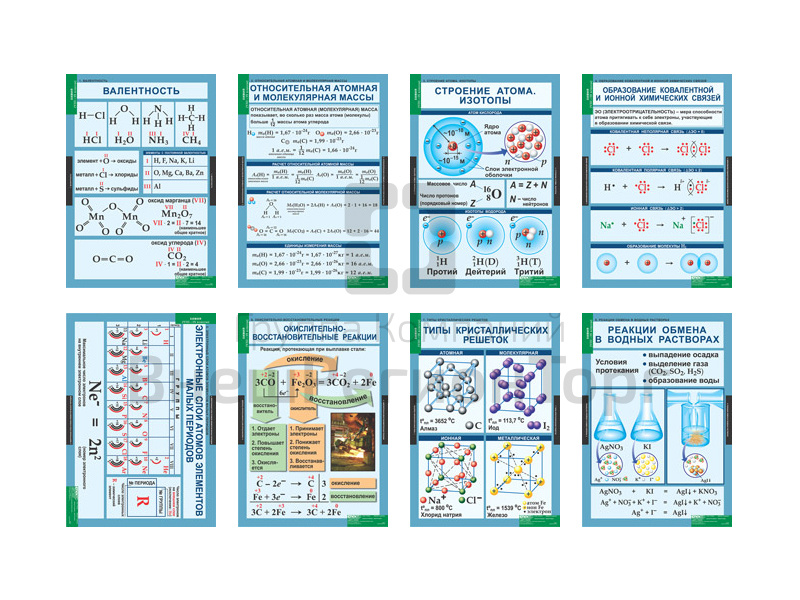Подробное описание "ХИМИЯ 8-9 класс", 20 таблиц, 68х98 см.