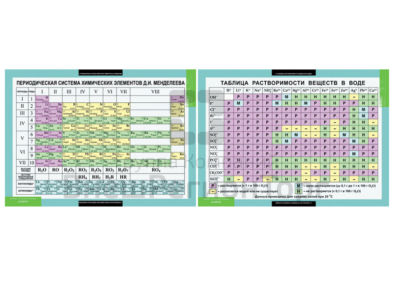 Таблица периодическая система химических элементов Д.И. Менделеева. Таблица растворимости веществ. Правила поведения в кабинете химии. Знаки. Техника безопасности при проведении опытов. Техника безопасности при работе с газами.