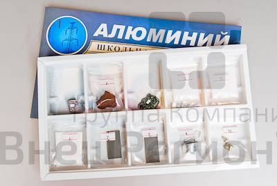 Образцы пронумерованы соответственно списку и положены в коробку с ячейками. Пособие комплектуется руководством по эксплуатации и ламинированным вкладышем, содержащим информацию о свойствах, производстве и применении алюминия.
