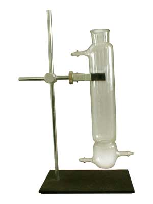 Прибор представляет собой тонкостенный сосуд с тремя впаянными патрубками (один - в верхней части и два - в нижней), и кольцевым перехватом на расстоянии 40 мм от основания.