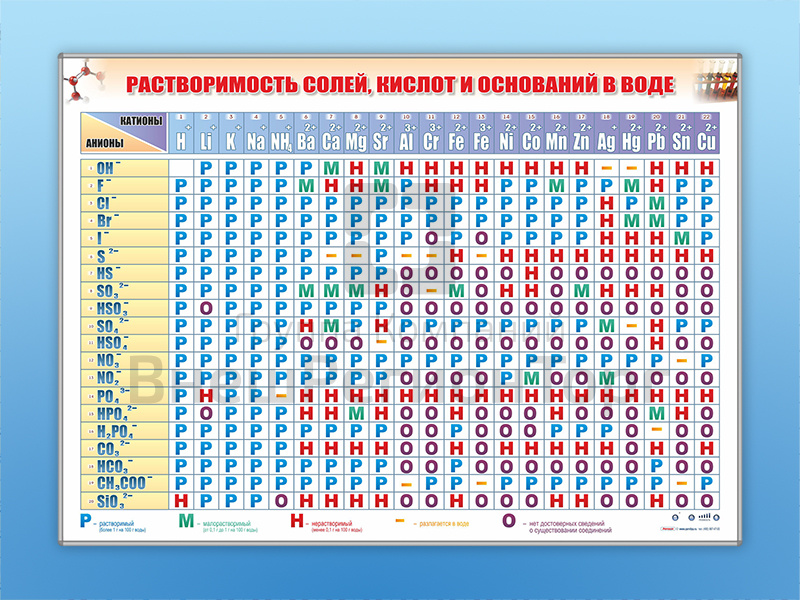 Подробное описание Электронный, световой стенд "Растворимость кислот, оснований и солей в воде"