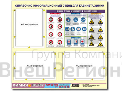 Подробное описание Стенд информационный "Правила техники безопасности в кабинете химии", 70х75 см.
