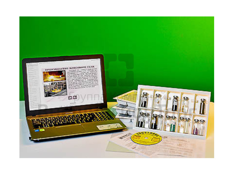 В состав коллекции входят следующие образцы: каменный уголь, коксовый газ, кокс, аммиачная вода, минеральные удобрения, пек, бензол, каменноугольная смола, нафталин, толуол, красители, анилин, сахарин, фенол, пластмасса, каменный уголь.Образцы расфасованы в стеклянные пузырьки с пробкой и обжимной крышкой. Пузырьки пронумерованы и упакованы в коробку с ячейками. Горючие, взрывчатые и ядовитые вещества имитированы. Комплектуются ламинированным вкладышем с информацией о коксовании каменного угля и применении продуктов его переработки.