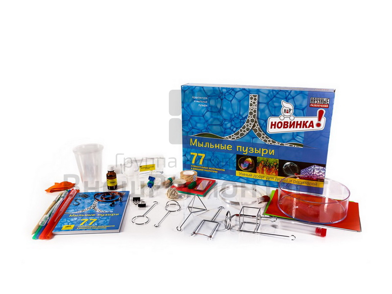 77 опытов. Набор посвящен исследованию мыльных пленок и пузырей. При всей простоте, вы увидите совершенно необычные явления.