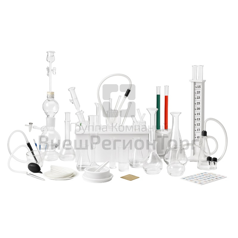 Комплектность: аппарат Киппа (250 мл) – 1 шт., прибор для иллюстрации зависимости скорости химических реакций от условий – 1 шт., прибор для окисления спирта над медным катализатором – 1 шт., прибор для получения галоидоалканов – 1 шт., стеклянные колбы (коническая 250 мл – 1 шт., круглодонная 250 мл – 1 шт., круглодонная 500 мл – 1 шт., плоскодонная 250 мл – 1 шт., плоскодонная 500 мл – 1 шт., мерная с меткой 250 мл – 1 шт., мерная с меткой 500 мл – 1 шт.) – 1 комплект, стеклянные стаканы (50, 100, 150, 250 мл – по 2 шт., 600 мл – 1 шт.) – 1 комплект, стеклянные пробирки химические (14×120, 16×150 и 21×200 мм – по 4 шт.) – 1 комплект, мерные стеклянные цилиндры (50 и 100 мл – по 1 шт.) – 1 комплект, прямая стеклянная трубка L = 15 см – 1 шт., стеклянные трубки, загнутые под углом (60°, 90° и 100° – по 1 шт.) – 1 комплект, стеклянные палочки – 2 шт., стеклянная чашка Петри – 1 шт., стеклянные воронки (диаметром 56 и 75 мм – по 1 шт.) – 1 комплект, стеклянные пипетки (2, 5 и 10 мл – по 1 шт.) – 1 комплект, фарфоровый стакан 150 мл – 1 шт., фарфоровая ступка с пестом – 1 шт., фарфоровый шпатель – 1 шт., ареометры (800, 900, 1000, 1100, 1200 кг/м3 – по 1 шт.) – 1 комплект, ложка для сжигания веществ – 1 шт., зажим пробирочный – 1 шт., металлический пинцет – 1 шт., силиконовая трубка L = 1 м – 1 шт., распылительная сетка – 1 шт., штатив для пробирок (10 гнезд) – 1 шт., спиртовка – 1 шт., резиновые пробки (диаметр 14,5 мм – 4 шт., 16 мм – 2 шт., 19 мм – 2 шт., 29 мм – 3 шт.) – 1 комплект, резиновые пробки с газоотводными трубками – 2 шт., набор этикеток самоклеящихся – 1 шт., бумажные фильтры диаметром 150 мм – 1 уп., учебное пособие «Демонстрационные опыты с цифровыми лабораториями. Физика. Химия» (авторы Е. Ю. Косарева, Л. Е. Богданова, печать офсетная, обложка полноцветная) – 1 шт., руководство по эксплуатации – 1 шт.