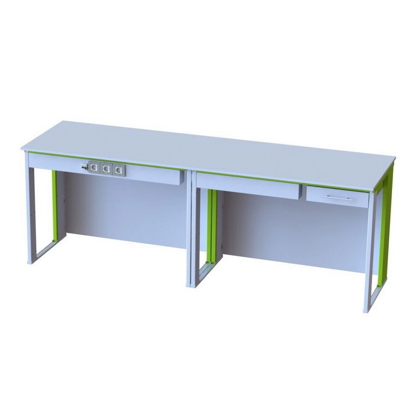 Конструкция стола демонстрационного является модульной и позволяет изменять компоновку и дооснащение столов стандартными элементами в процессе эксплуатации. Лабораторные столы имеют усиленный металлический каркас из гнутого металлического листа, с использованием лазерной резки. Стол не имеет сварных швов. Элементы конструкции соединяются между собой с помощью винтового соединения и резьбовых заклёпок. Жесткость достигается за счет гибки рёбер жесткости и элементов, состоящих из двухслойного металла. Благодаря всему этому достигается миллиметровая точность без искажений, эстетичный внешний вид, мебель обладает высокими антикоррозионными свойствами и большой прочностью.
